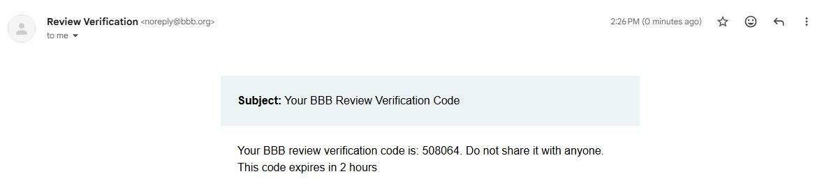 When a client posts a review in BBB, a verification codes gets emailed to them instantly. They need to input the code to finish the review.