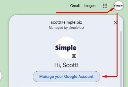 - Open a new tab in Chrome, click on your profile photo & go to "Manage your Google Account".